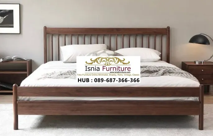 Produk ini mengusung estetika Mid-Century Modern yang sangat kuat, elegan, sederhana, dan tak akan pernah ketinggalan zaman. Dengan bahan kayu solid berwarna gelap (dark walnut), ranjang ini ideal untuk menciptakan suasana kamar yang tenang dan bernuansa premium.