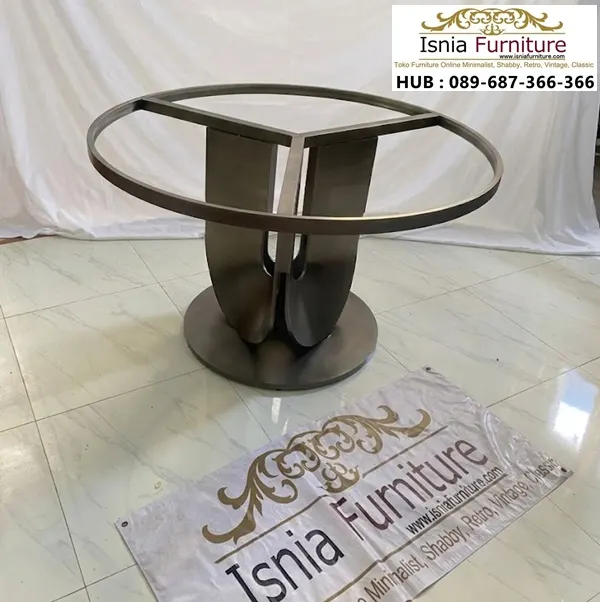 Dibuat dari plat besi solid berkualitas tinggi (besi plat tebal) yang kuat dan tidak mudah goyang. Sangat cocok untuk meja makan bulat atau meja tamu dalam ruang keluarga bergaya kontemporer, industrial modern, atau interior yang mewah.