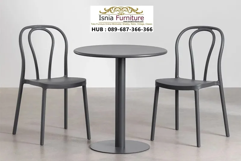 Kursi Cafe Outdoor Modern Industrial Set ini menggabungkan bentuk klasik Thonet dengan gaya Industrial Modern yang keren. Dibuat khusus untuk dipakai di tempat umum atau di rumah, set ini sangat tahan lama dan tetap terlihat menarik.
