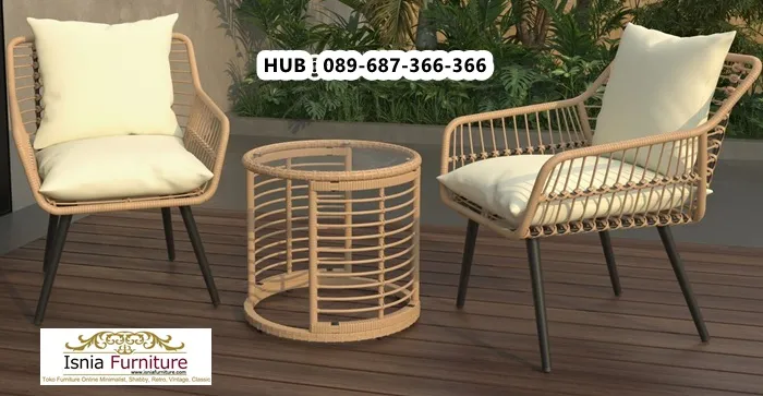 Karena karakter rotan yang unik menjadikan setiap kursi memiliki kesan eksklusif Kursi Teras Estetik Modern Rotan ini cocok untuk semua jenis teras balkon, taman, maupun area bersantai material rotan pilihan dipadukan dengan rangka yang kuat untuk memastikan stabilitas dan ketahanan kursi, serta dilengkapi dengan dudukan busa yang empuk hingga senderan dari busa. Anyaman yang rapi memberikan sirkulasi udara yang baik, sehingga duduk terasa lebih sejuk, nyaman dan santai terutama di area outdoor.