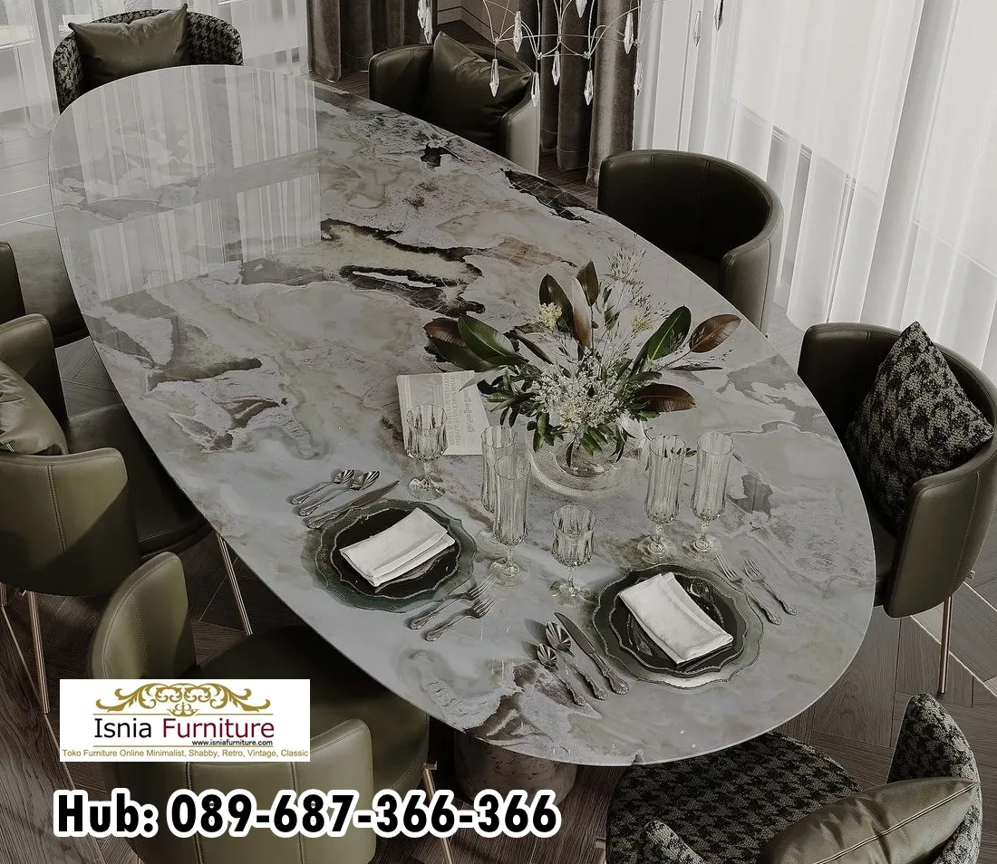 Pengguna dapat saling berhadapan dengan nyaman, menciptakan suasana yang lebih akrab. Hal ini sangat penting terutama untuk ruang makan atau ruang diskusi. Desain Meja Marmer Bulat Besar Unik mampu menyatu dengan berbagai konsep interior, mulai dari modern minimalis hingga klasik elegan.Rangka kaki meja biasanya dibuat dari bahan kuat seperti besi atau stainless steel yang menambah kestabilan sekaligus mempercantik desain.Permukaan marmer yang padat tidak mudah tergores dan tahan terhadap panas, sehingga sangat ideal untuk penggunaan jangka panjang. Selain itu, ketebalan marmer memberikan kesan kokoh dan premium yang tidak bisa didapatkan dari meja biasa.