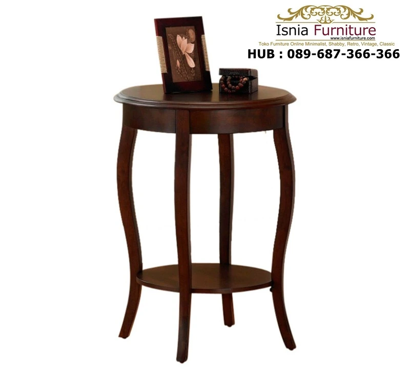 Dibuat dari kayu solid pilihan, dengan finishing halus warna walnut, memberikan nuansa mewah dan daya tahan yang baik. Kaki meja yang melengkung dengan lembut tidak hanya menawarkan kestabilan tetapi juga menambah daya tarik estetika klasik yang unik. Memiliki 2 permukaan melingkar yang luas, dengan bagian atas ideal untuk dekorasi utama, sedangkan rak di bawahnya dapat digunakan untuk menyimpan buku atau koleksi kesayangan Anda.