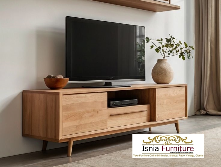 Alasan Kenapa Meja Tv Bisa Jadi Furniture Serbaguna di Rumahmu Salah satunya Meja tv sebagai Penghias Ruangan,saat ini banyak sekali desain meja tv yang tidak hanya cantik,namun juga unik. selain mengedepankan fungsi meja TV juga didesain secara artistik sehingga dapat memberikan aksen tersendiri pada ruanganmu. Meja Tv Jati Minimalis ini dapat memperkuat kesan dan menambah keindahan,kamu juga bisa menaambahkan aksesoris seperti miniatur atau vas bunga. Meja ini di desain dengan model memiliki lemari  di sebelah kanan, kiri dan laci di tengah. Laci tengah sengaja di desain tanpa penutup, bisa digunakan untuk menaruh CD atau DVD agar tidak berantakan. sangat multifungsi bukan hehehe.