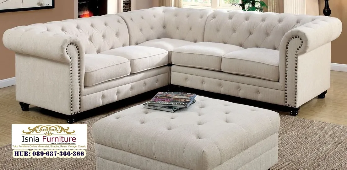 Sofa ini sangat ideal untuk ruangan luas maupun terbatas, membuat setiap sudut ruangan dimanfaatkan dengan tepat, Sofa Sudut L merupakan sofa modern yang dirancang untuk memberikan kenyamanan saat digunakan untuk duduk dan menerima tamu dan memiliki tampilan minimalis dengan garis-garis bersih dan porsi yang pas. Selain itu sofa ini dilengkapi busa tebal dan empuk, konstruksi rangka terbuat dari kayu solid yang kuat, ditambah dudukan yang melenting namun tetap stabil. Lapisan jok tersedia dalam beragam pilihan material seperti fabric halus, canvas premium, atau kulit sintetis mewah yang mudah dibersihkan dan tahan lama.